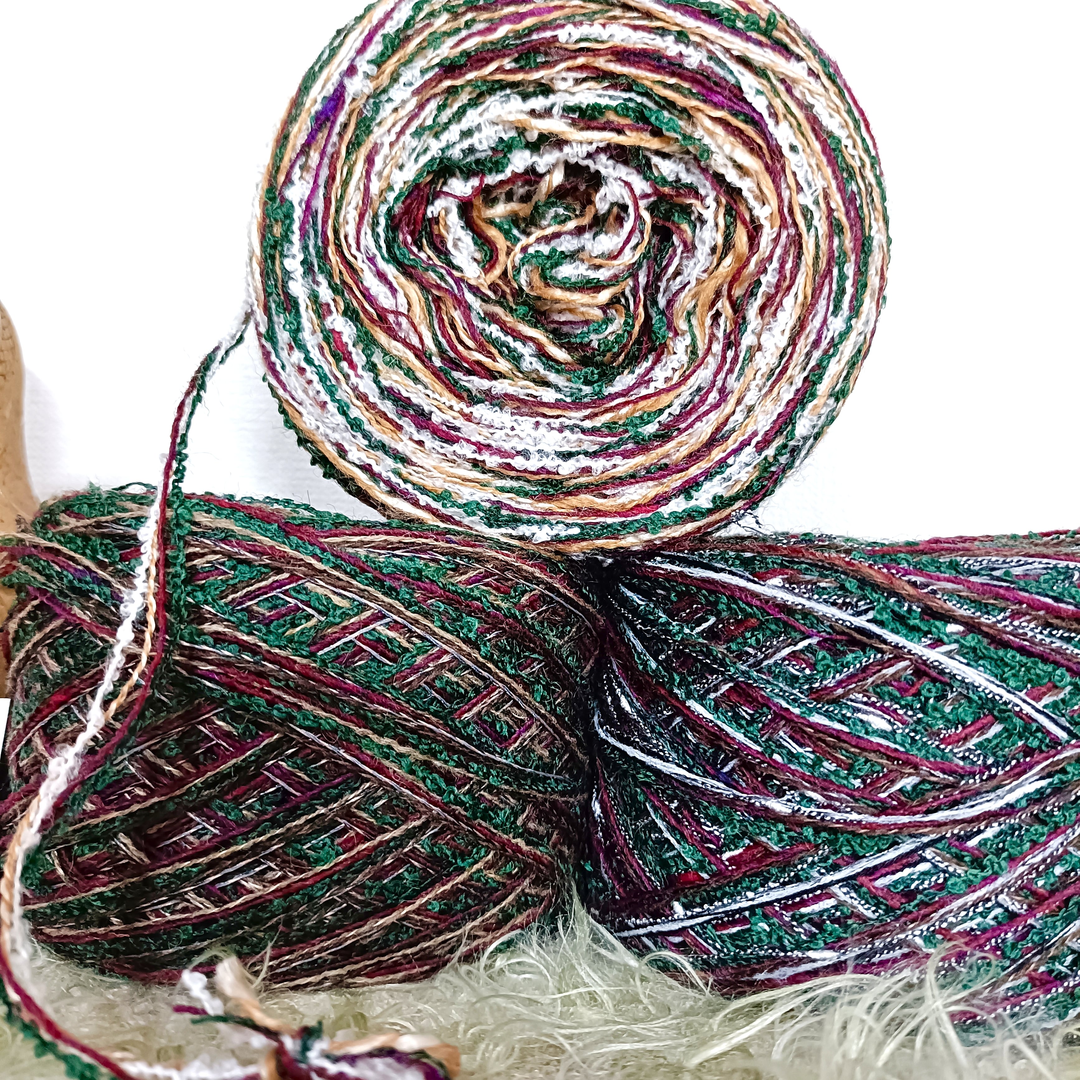 ○秋冬にぴったりの糸を引き揃えて