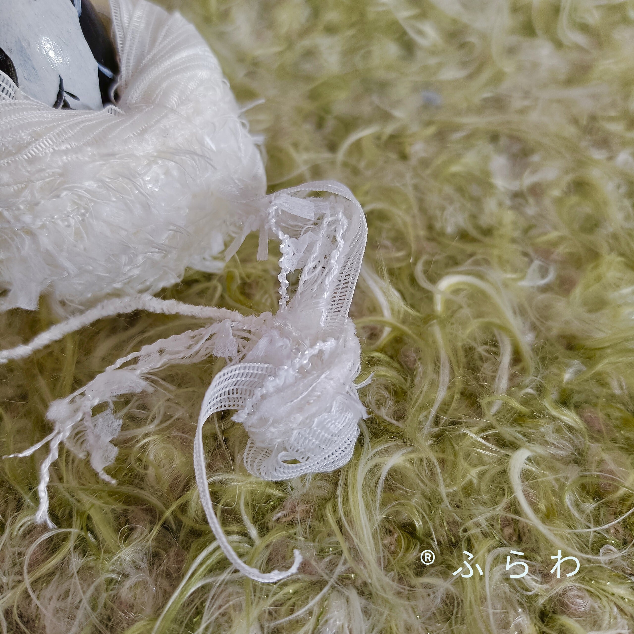 複数本の飾りの付いた糸やリボンを